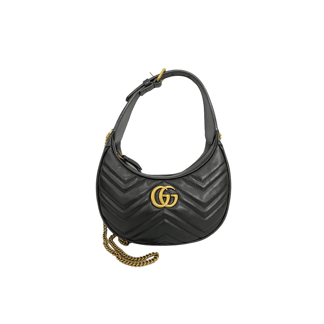 The Gucci GG Marmont Half Moon is crafted from matelassé leather with a curved silhouette and signature GG logo hardware. Chic and feminine, it is perfect for stylish everyday wear.