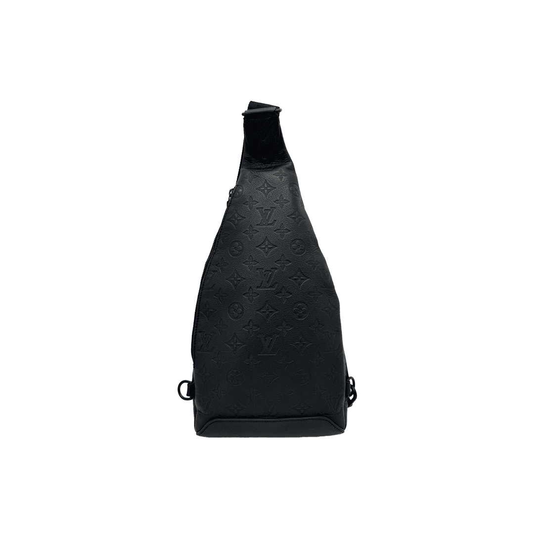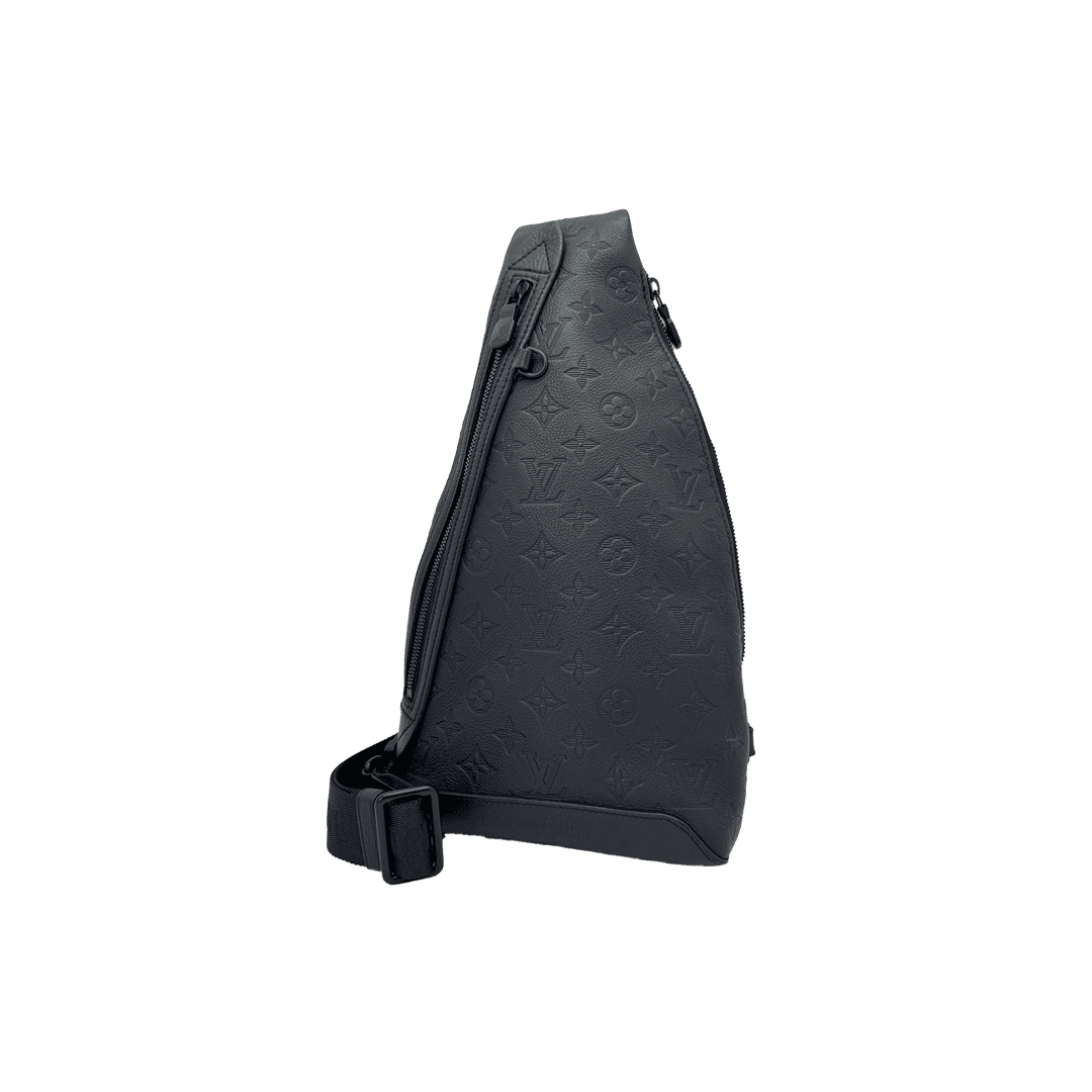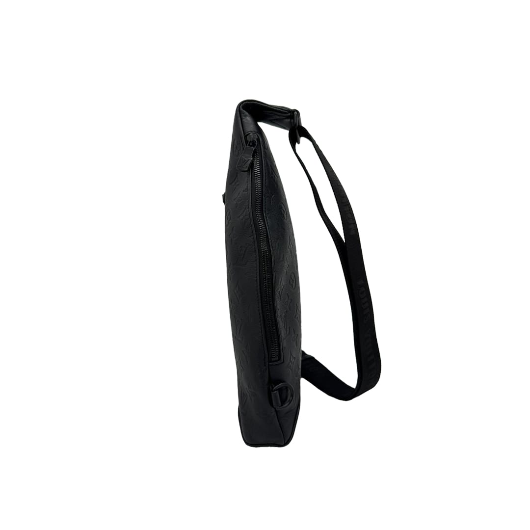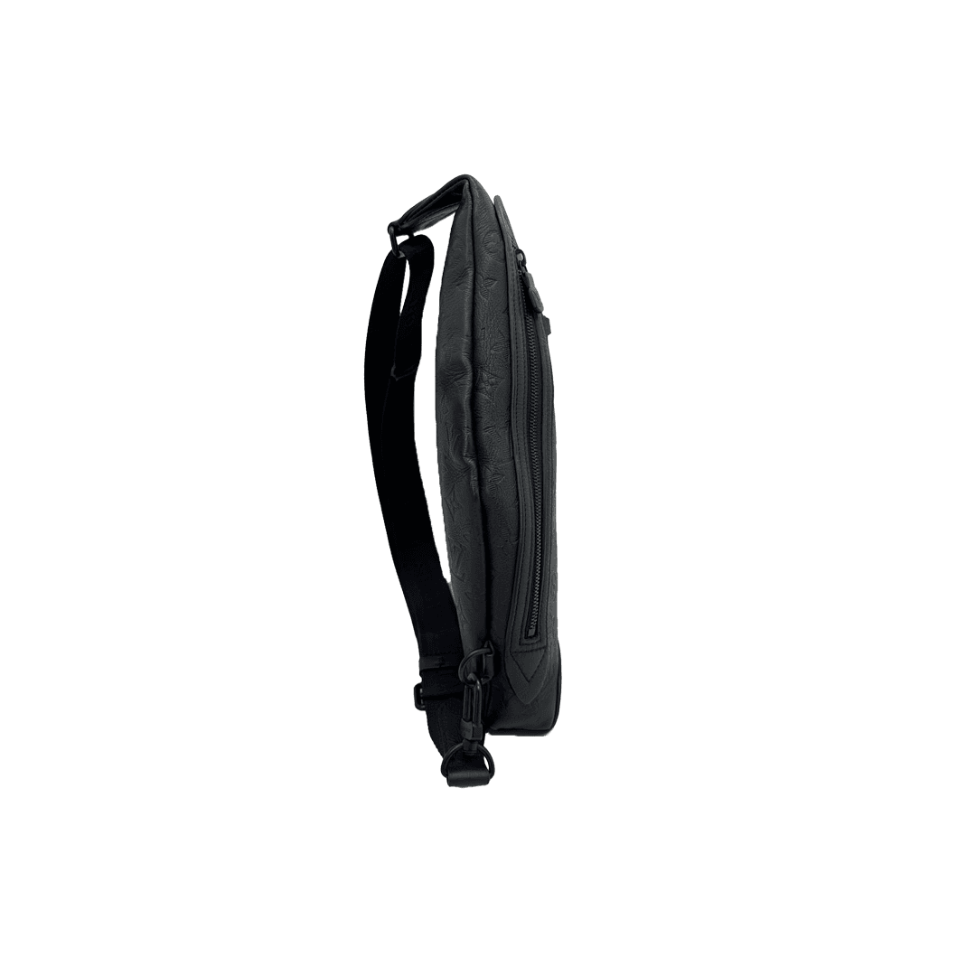 The Louis Vuitton Duo Sling Bag is crafted from Monogram Shadow embossed leather, featuring a sleek silhouette and adjustable strap. Compact and functional, it comes with a removable zipped pouch for added convenience.