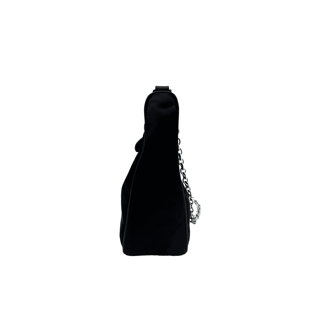 The Prada Re-Edition 2005 is crafted from Re-Nylon with Saffiano leather trim, featuring silver-tone hardware and the iconic Prada triangle logo. Stylish and practical, it comes with a chain shoulder strap, adjustable nylon logo strap, and a detachable mini pouch, making it perfect for versatile everyday wear.